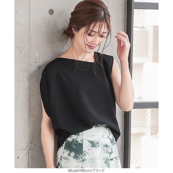 夏 カットジョーゼットアシメスリーブプルオーバートップス レディース 大人 ゆったり リラックス シンプル 無地 黒 C4737
