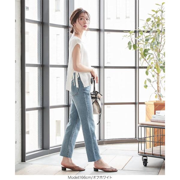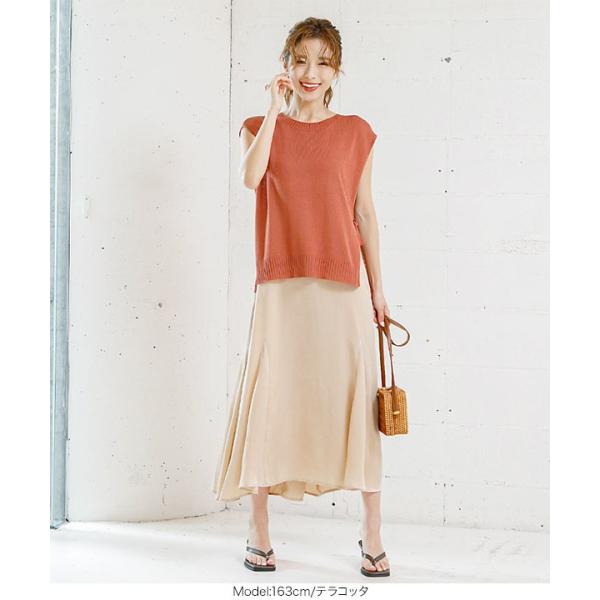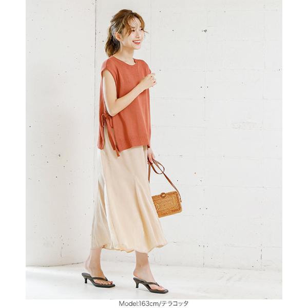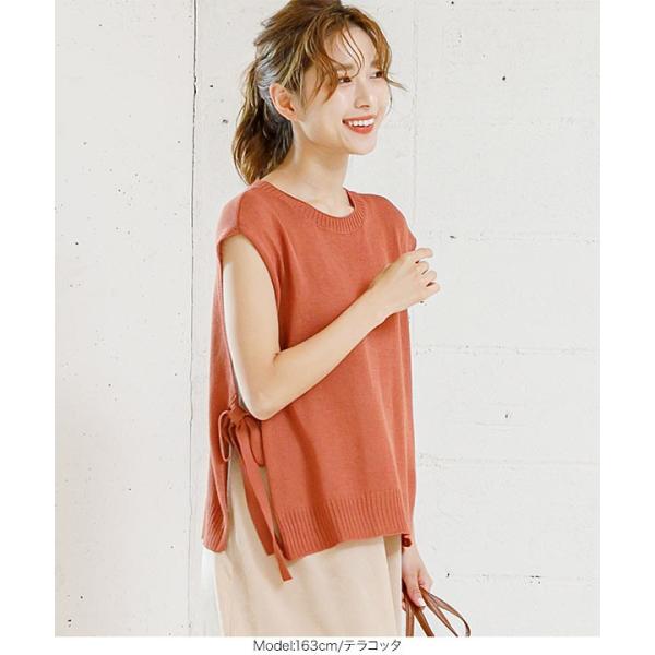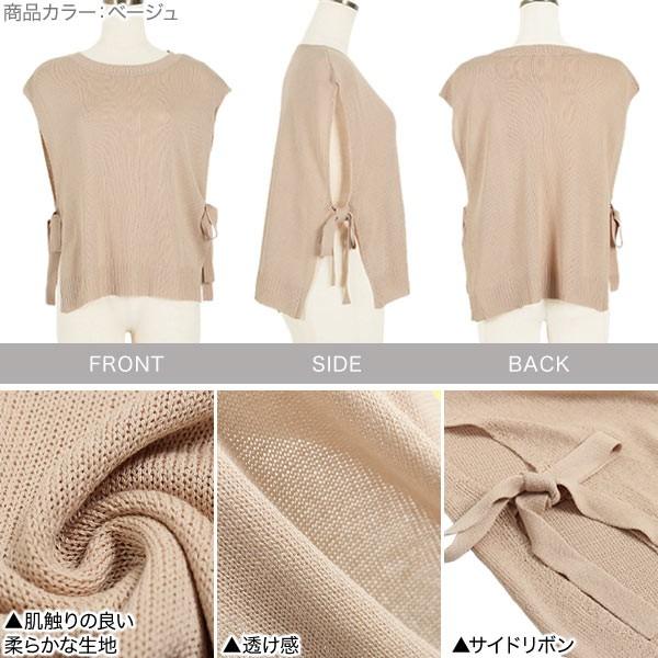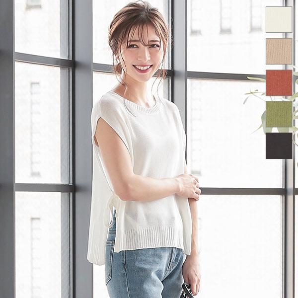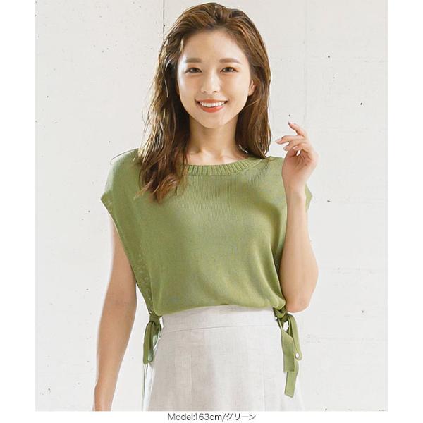 トップス サマーニット ノースリーブ サイドリボン 大人