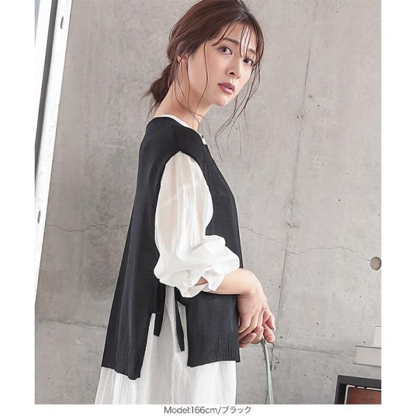 夏 サイドリボンサマーニットプルオーバー レディース トップス ノースリーブ 透け ゆったり 大人 カジュアル 白 黒 C4786