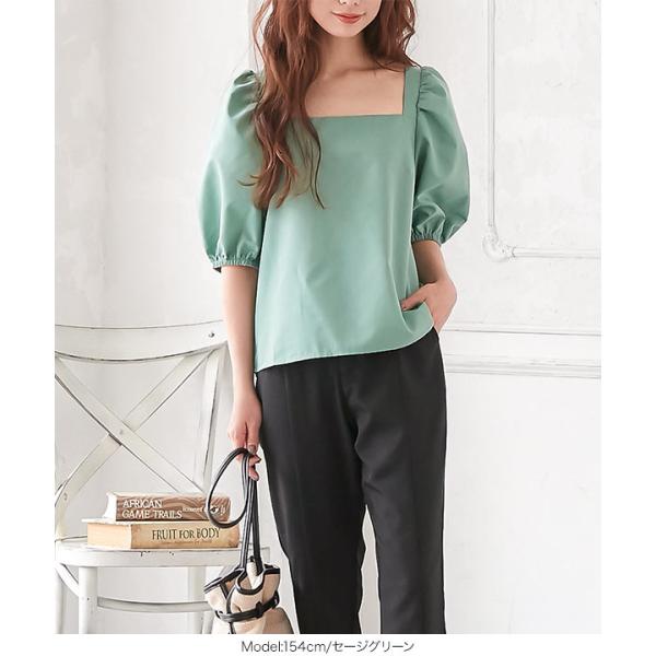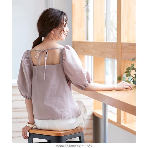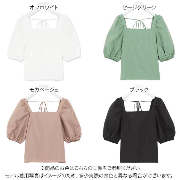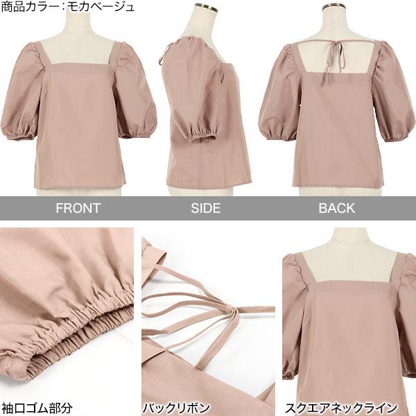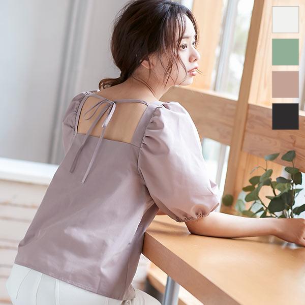 ブラウス 半袖 ボリューム袖 上品 スクエアネック バックリボン 夏 大人 レディース トップス C4795