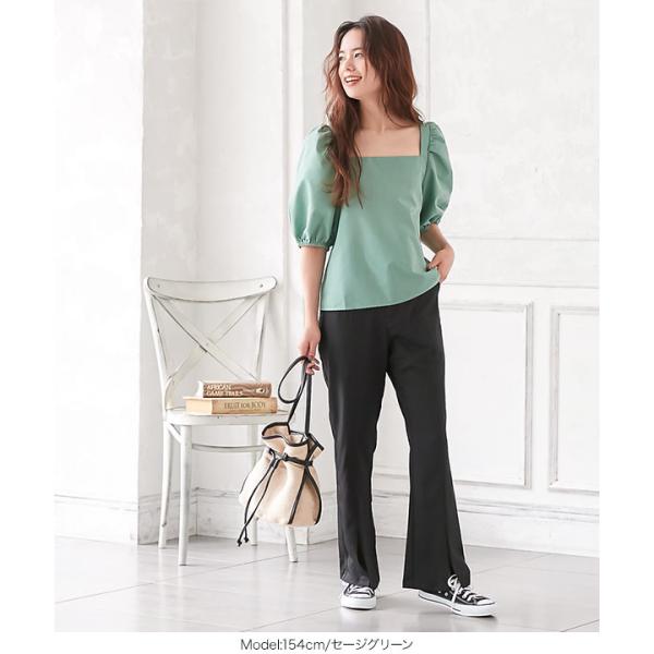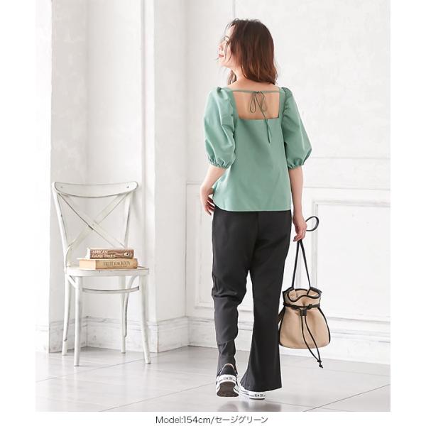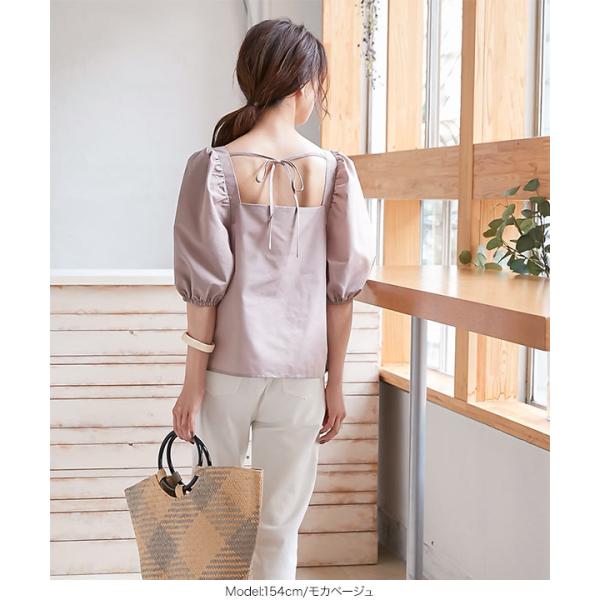 ブラウス 半袖 ボリューム袖 上品 スクエアネック バックリボン