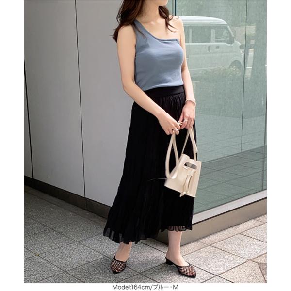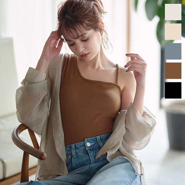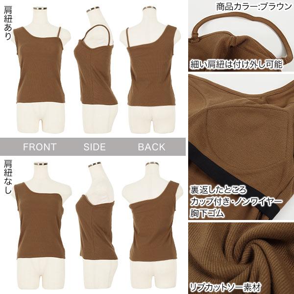 タンクトップ レディース トップス カップ付き ワンショルダー リブノンワイヤー 2WAY インナー カット...