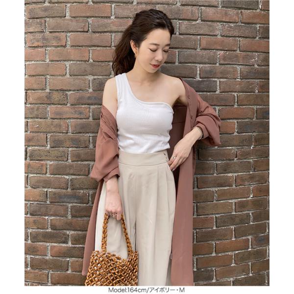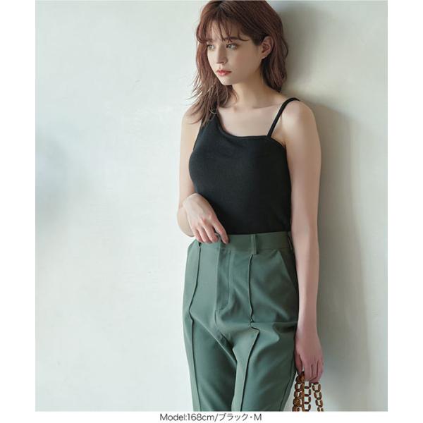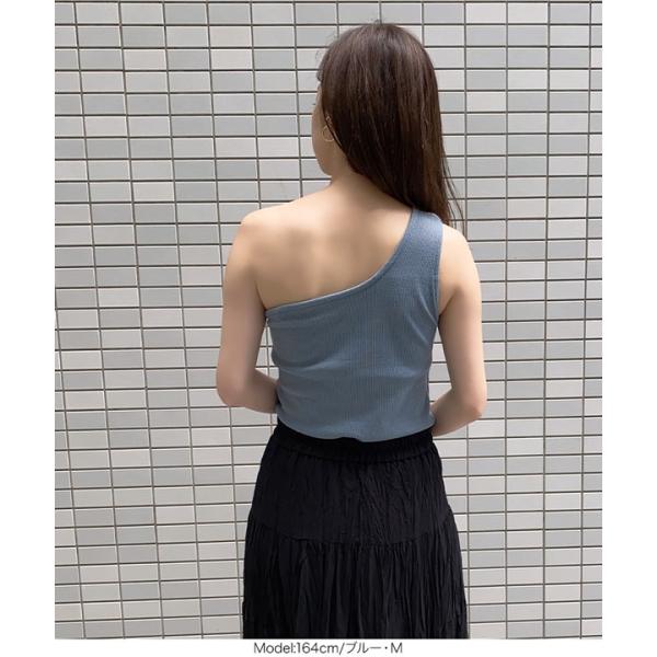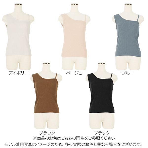 タンクトップ レディース トップス カップ付き ワンショルダー リブノンワイヤー 2WAY インナー カットソー C4824