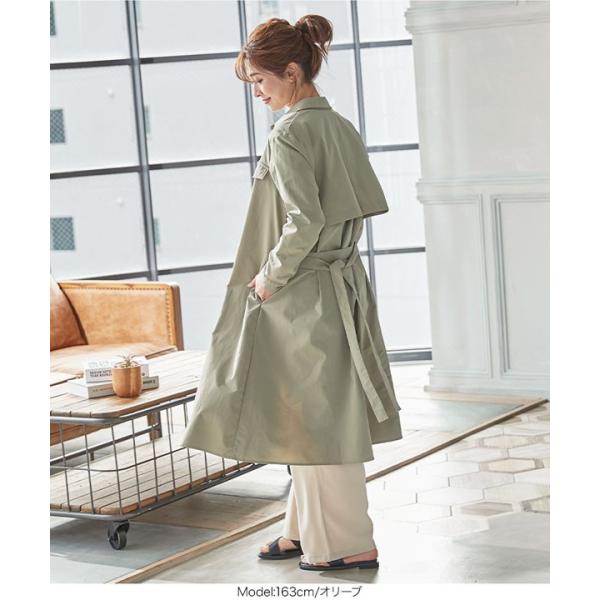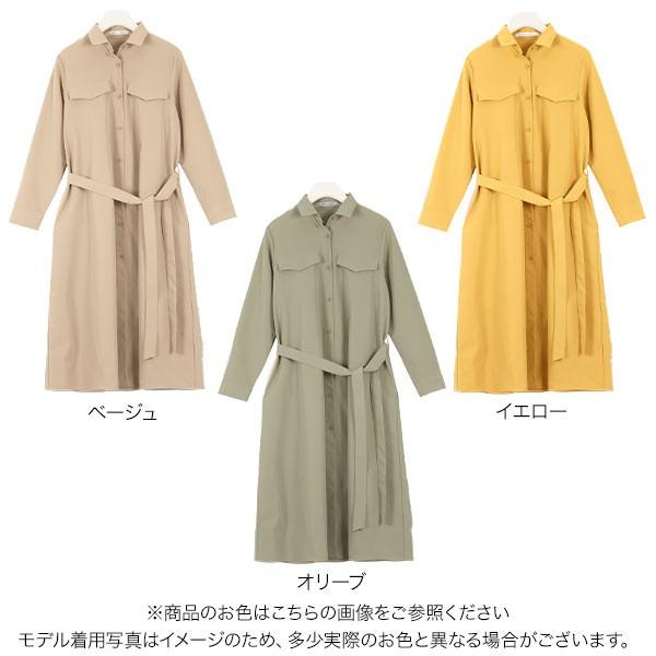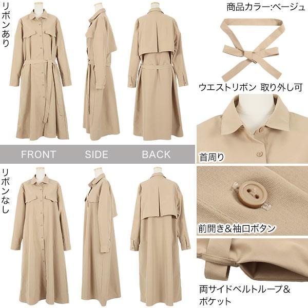 羽織り 2wayトレンチワンピース レディース カジュアル アウター ロング ウエストリボン ポケット 大人 長袖 襟 無地 E2357