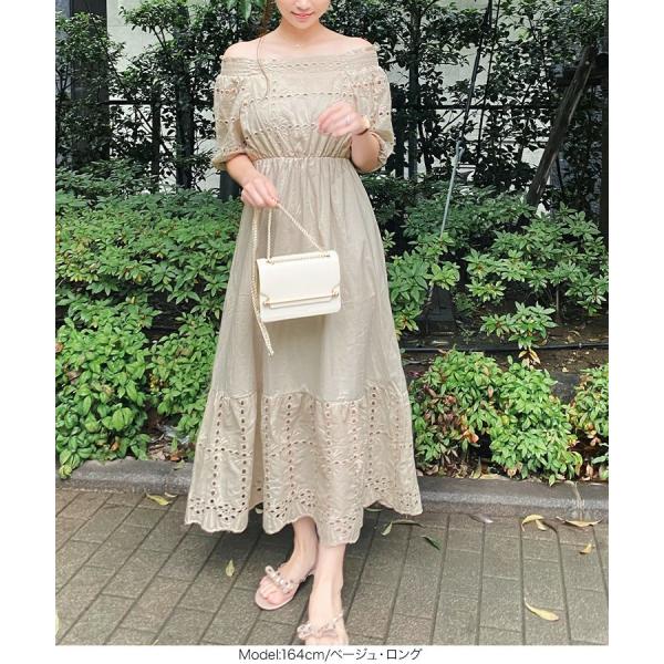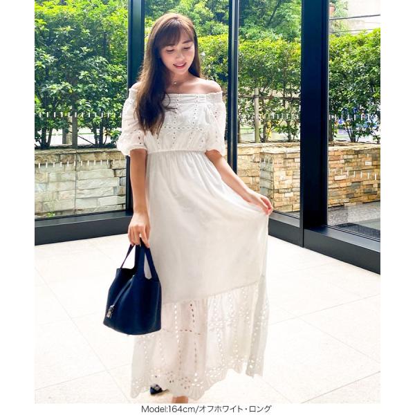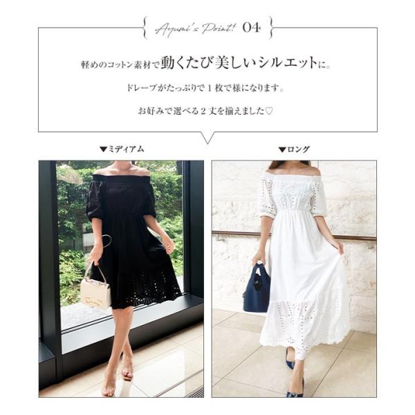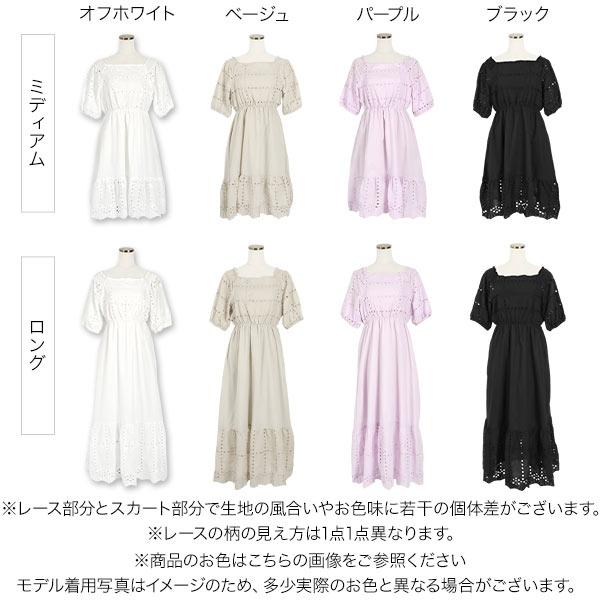 ワンピース レース 半袖 岡部あゆみさんコラボ 選べる2丈 2WAY レディース スクエアネック オフショルダー E2445