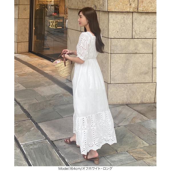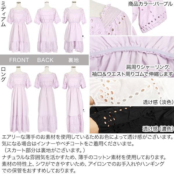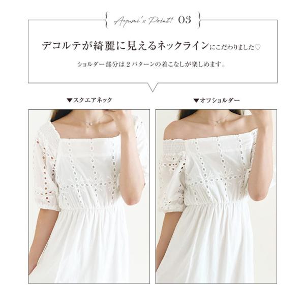半袖 岡部あゆみさんコラボ 選べる2丈2WAYレースワンピース レディース コットン スクエアネック オフショルダー E2445