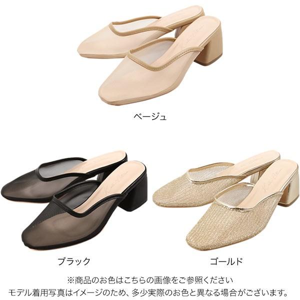 ミュール 透け感 メッシュ スクエアトゥ シースルー 春夏 レディース 靴 シューズ 大人 上品 太ヒール ...