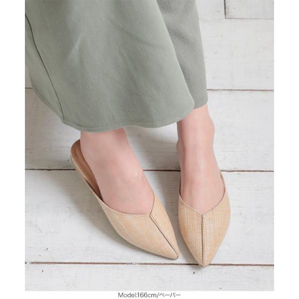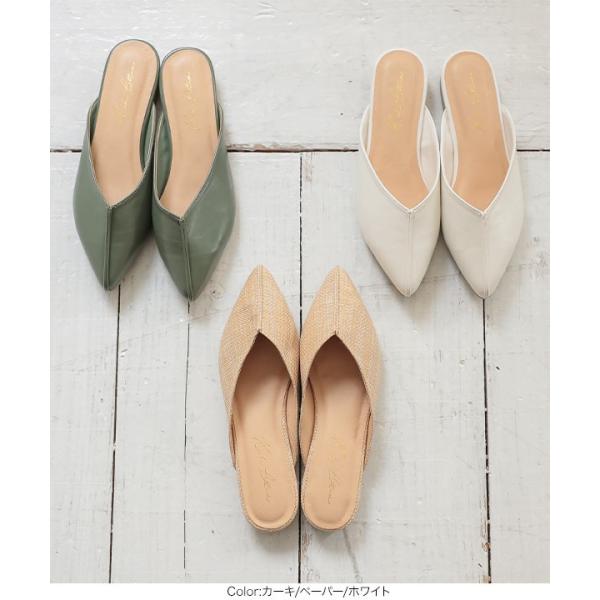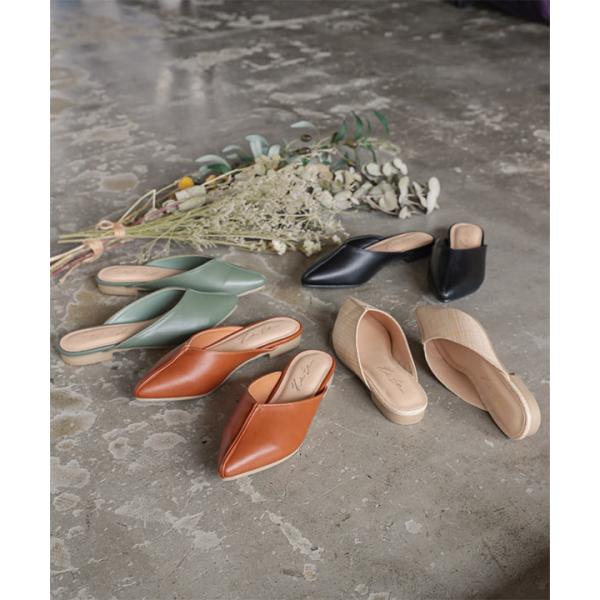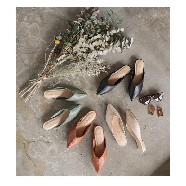 夏 センターパーツミュール レディース シューズ 靴 フラット ポインテッドトゥ カジュアル I2109