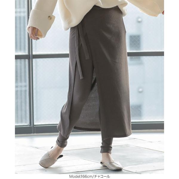 スカート ラップスカート ロング リブレギンス ボトムス 2点セット レギンスセット ロング 10分丈 秋...