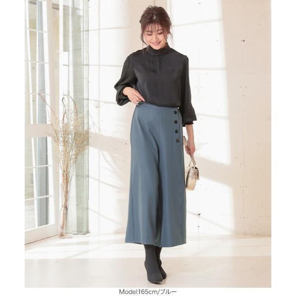 大人 サイドボタンフレアワイドパンツ レディース ボトムス ズボン パンツ ボタン バックゴム 体型カバー M2751