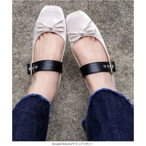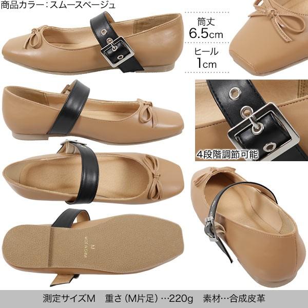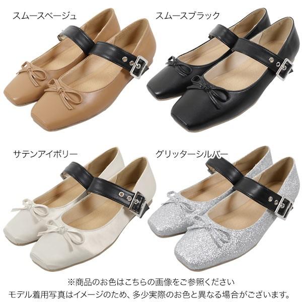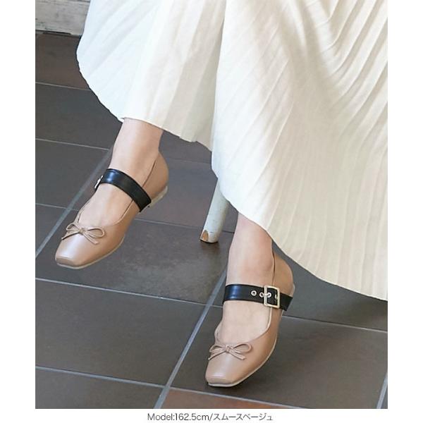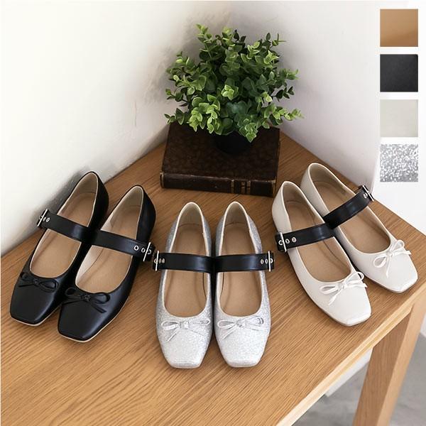パンプス シューズ レディース ストラップ スクエアトゥ ローヒール ぺたんこ I2014