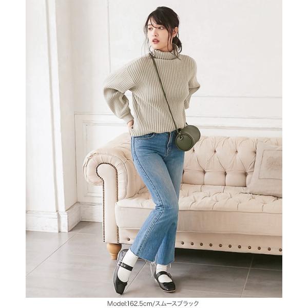 コロンとしたスクエアトゥがレトロ可愛いフラットパンプス。