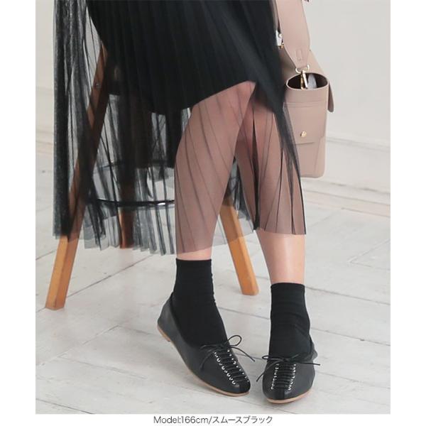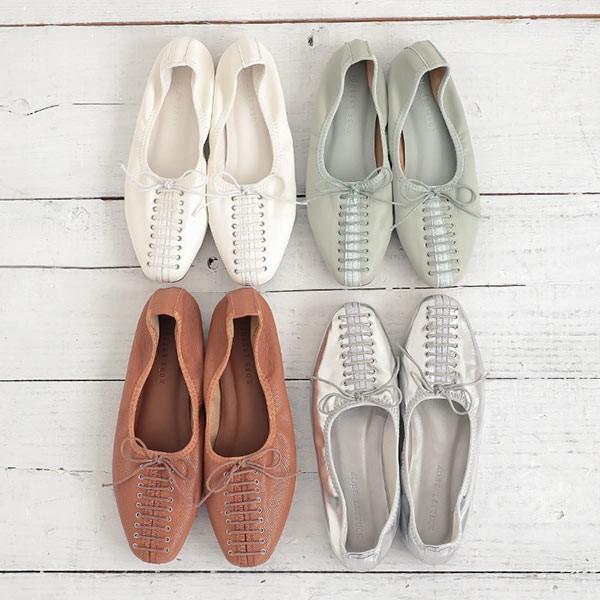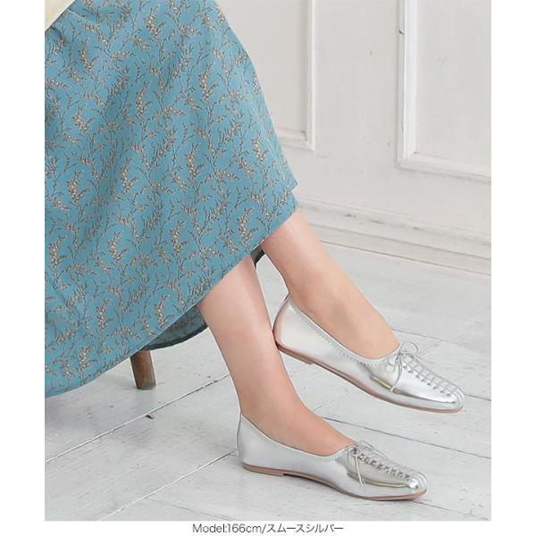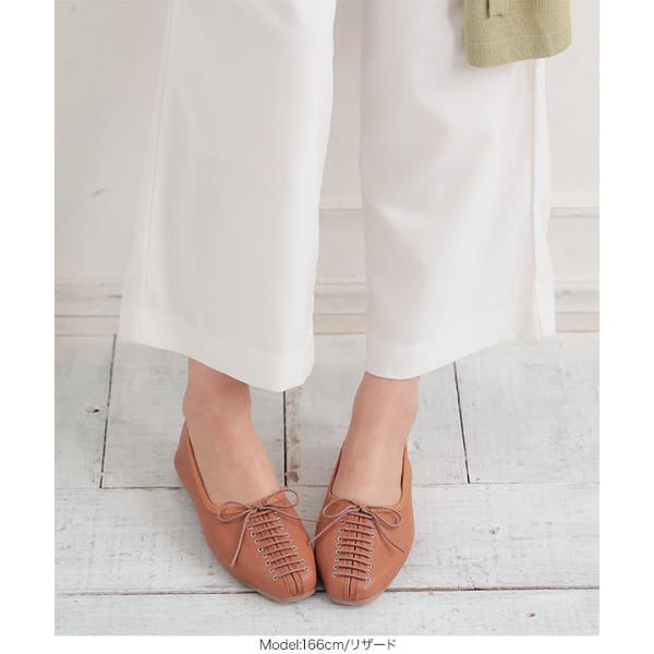 パンプス レースアップ ギャザー 靴 シューズ フラット ぺたんこ 歩きやすい スムース リザード 春 レデ...