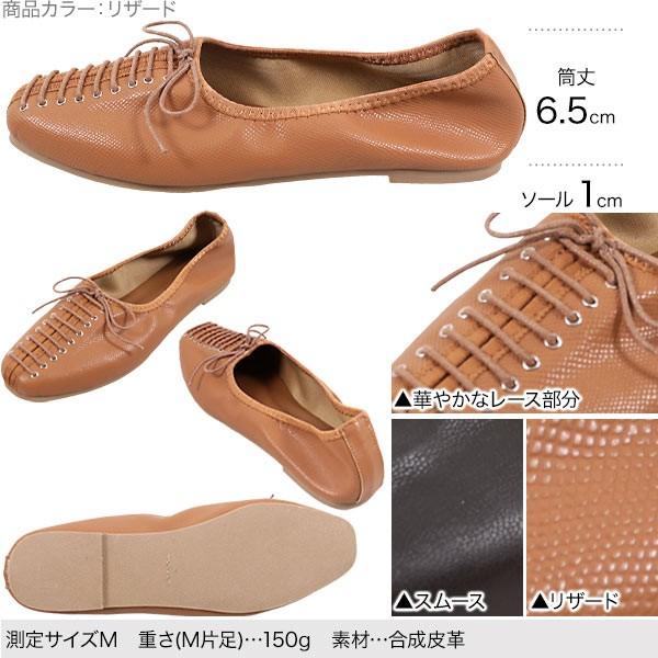 パンプス レースアップ ギャザー 靴 シューズ フラット ぺたんこ 歩きやすい スムース リザード 春 レディースI2019