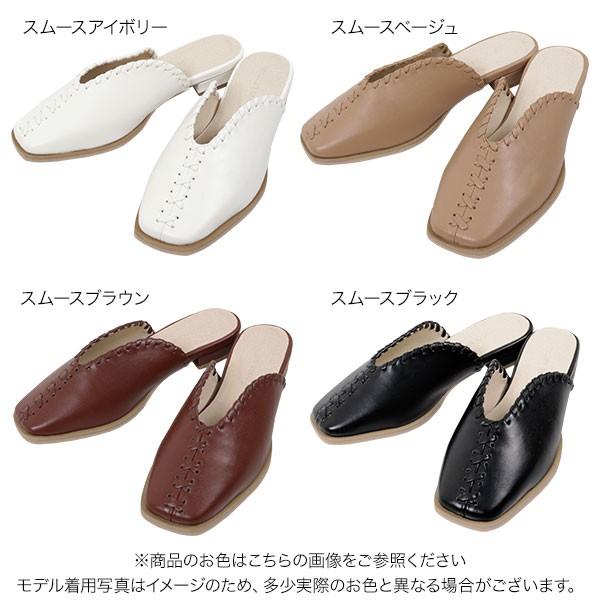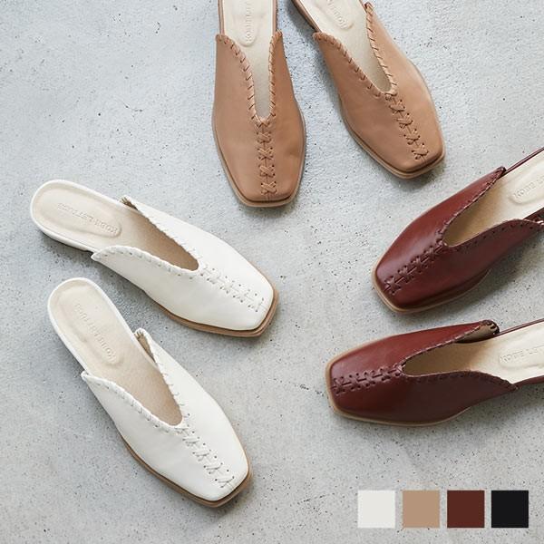 サンダル シューズ レディース リラックス クロスステッチ つっかけ ミュール フラットシューズ ぺたん...