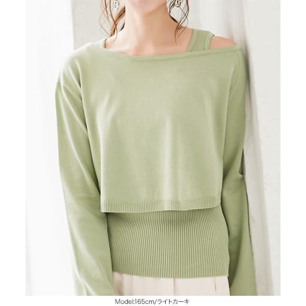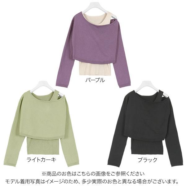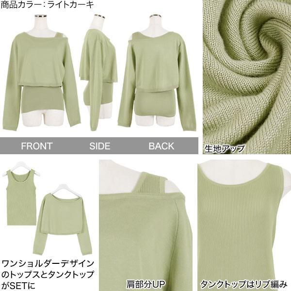 レディース トップス 2点セット ワンショルダー ニットタンク セット ワンショル ショート丈 プルオーバ...