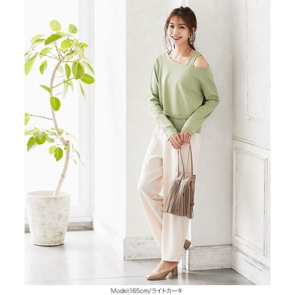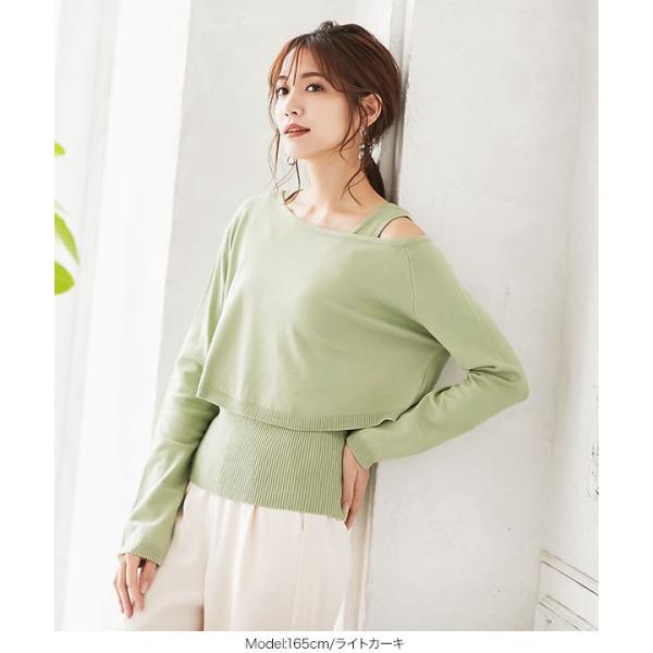 レディース トップス 2点セット ワンショルダー ニットタンク セット ワンショル ショート丈 プルオーバー 大人 春C4473
