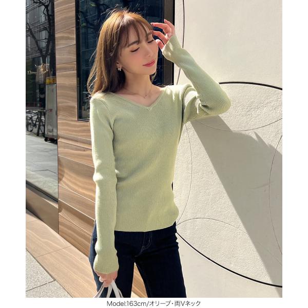 ニット [岡部あゆみさんコラボ]ハイゲージリブニットトップス レデース 長袖 バックシャン ハイゲージニット C4449