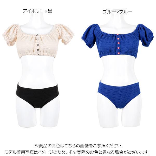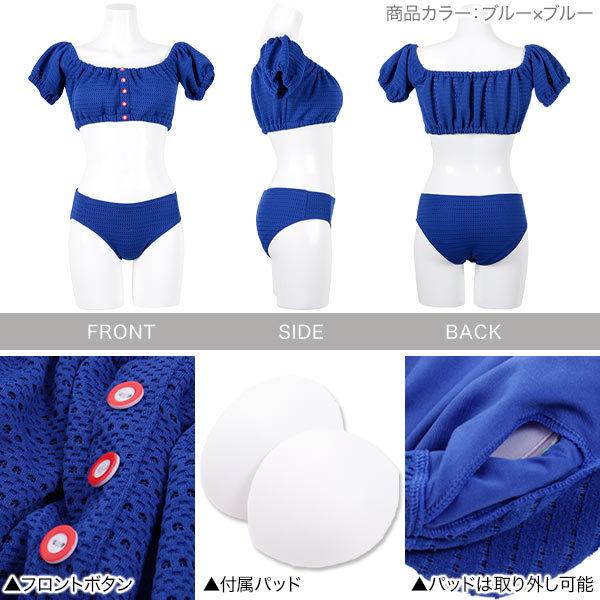 ミニトップス 2way オフショルダー フロントボタンメッシュビキニ パフスリーブ S160