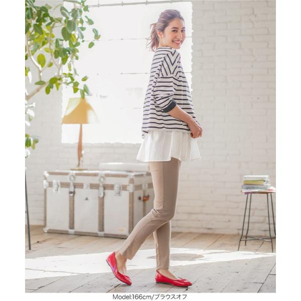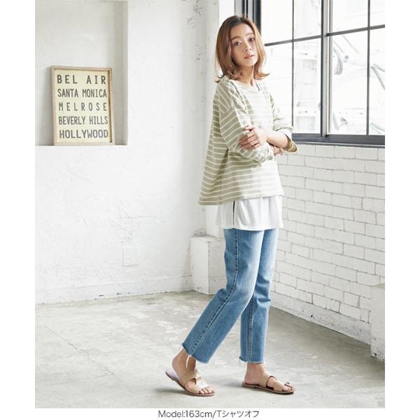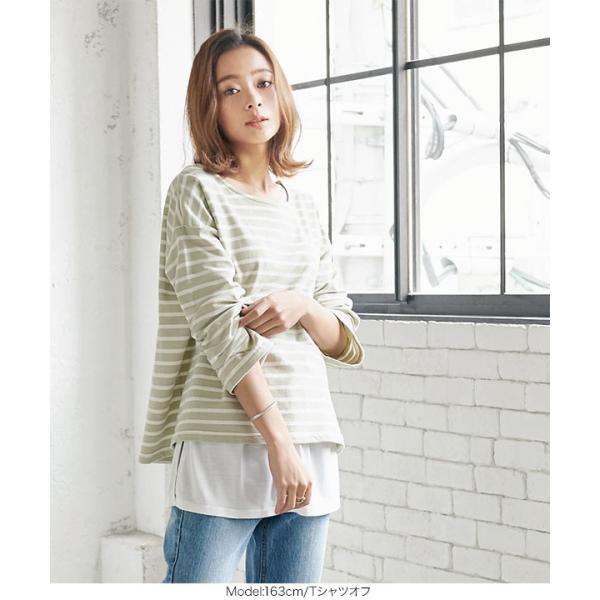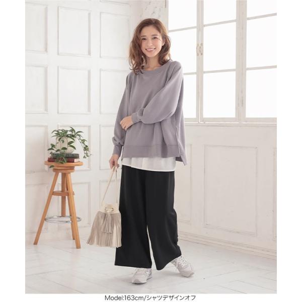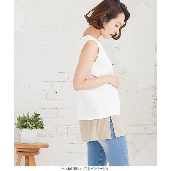 ウエストゴム フェイクレイヤード付け裾 レディース レイヤードトップス Tシャツ カットソー ブラウス シャツ スリット J699
