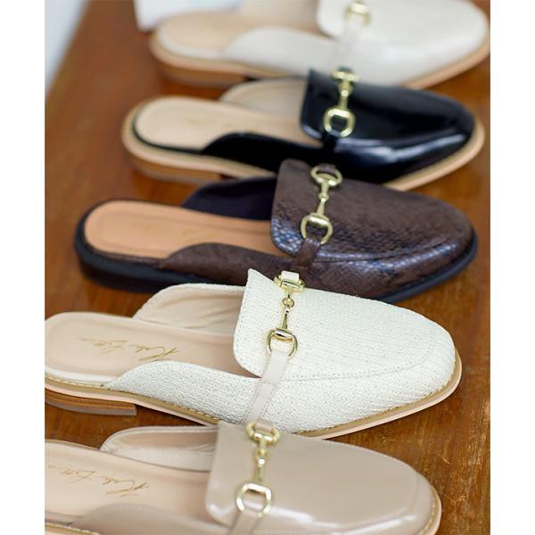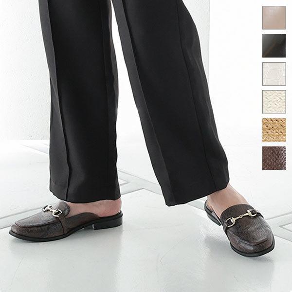 クッション ビット付きバブーシュローファー レディース シューズ フラットヒール ぺたんこ スリッパ リゾート I1732