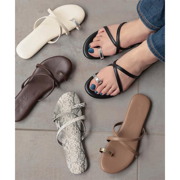 親指リングとクロスベルトがポイントのフラットサンダルが登場!
