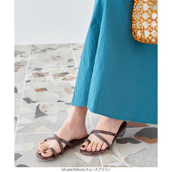 サンダル 靴 シューズ フラットサンダル ぺたんこ サムループクロスフラットサンダル レディース クロス...