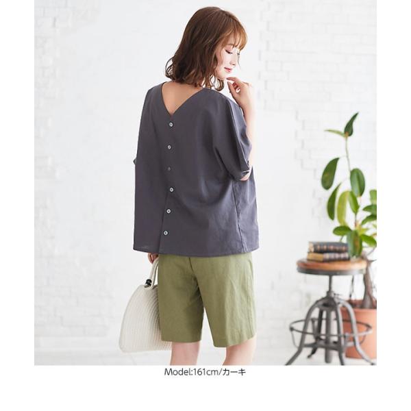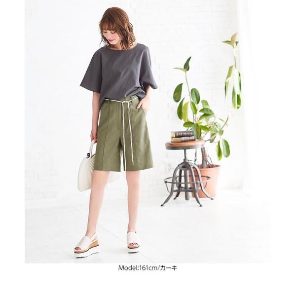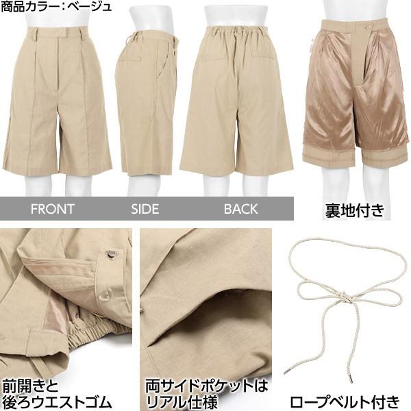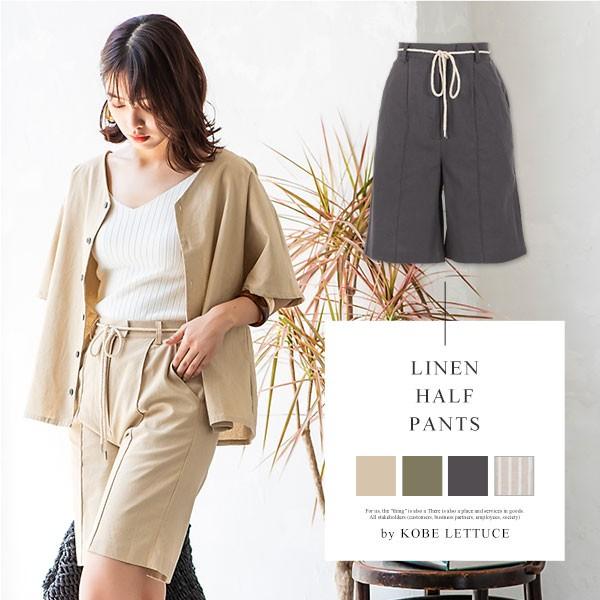 裏地 ロープベルト付バックウエストゴムリネンハーフパンツ レディース 麻 パンツ 無地 M2520