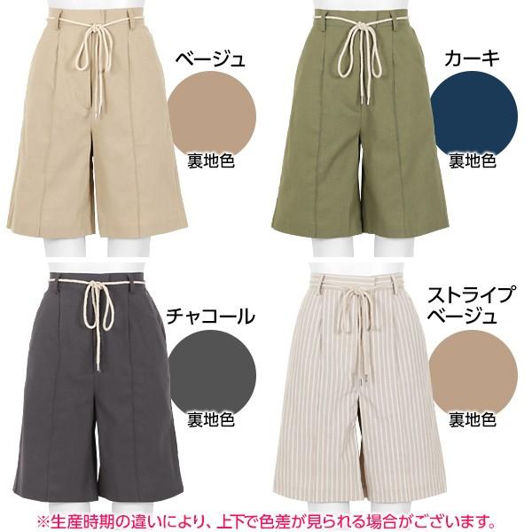 ロープベルト付 バックウエストゴムリネンハーフパンツ