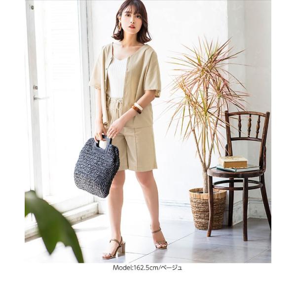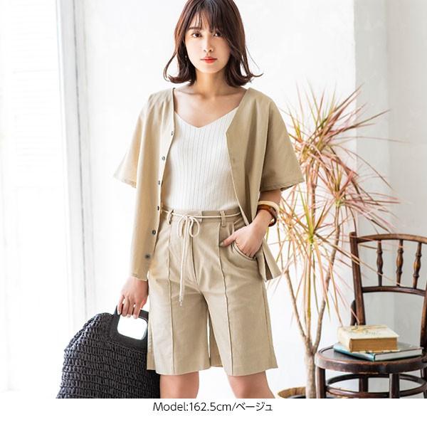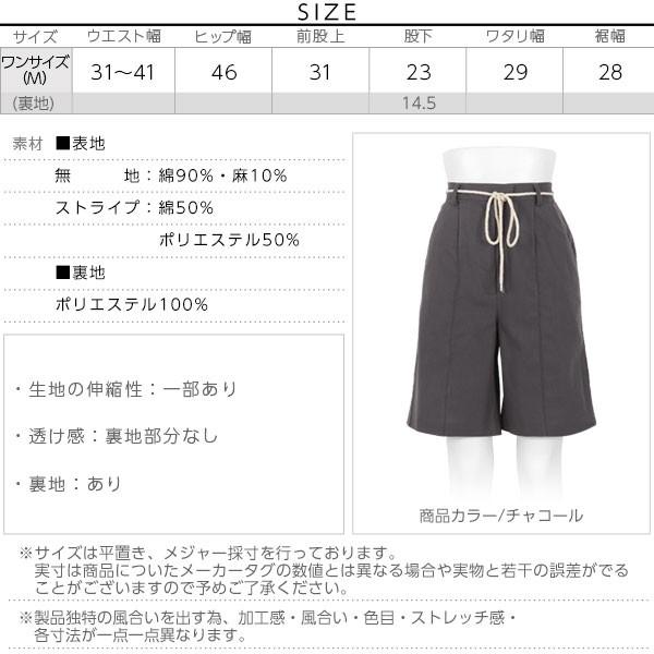 ハーフパンツ レディース パンツ 夏 裏地 ロープベルト付き ウエストゴム 麻 リネン M2520