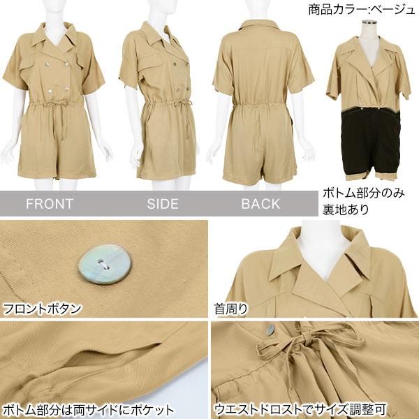 ゆったり ショートサロペット レディース オールインワン ワンピース ショート パンツ シャツ 半袖 ポケット 裏地付き E2150