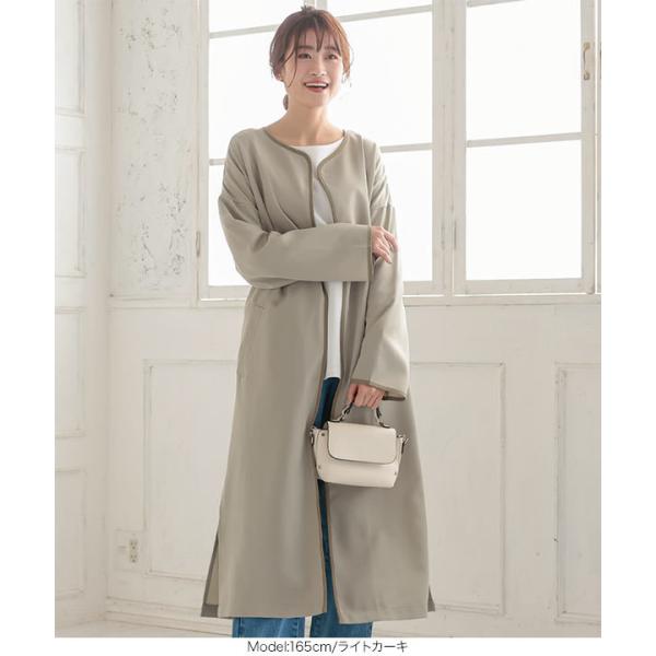 コート レディース アウター 春 ノーカラーコート