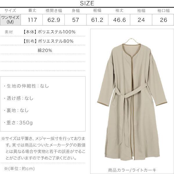 ベルト付き配色パイピングノーカラーサイドスリットコート