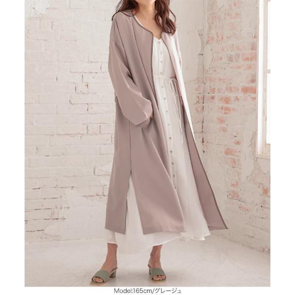 コート レディース アウター 春 ノーカラーコート ベルト付き サイドスリット 羽織り 長袖 ロング 上品 ...