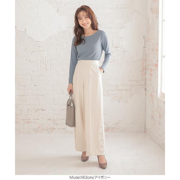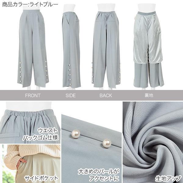体型カバー サイドパールワイドパンツ レディース ボトムス パンツ ワイドパンツ ゆったり M3115