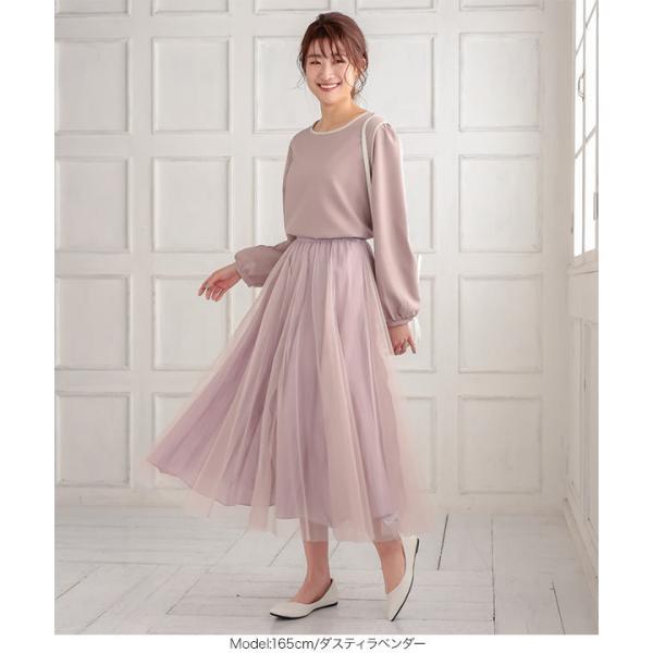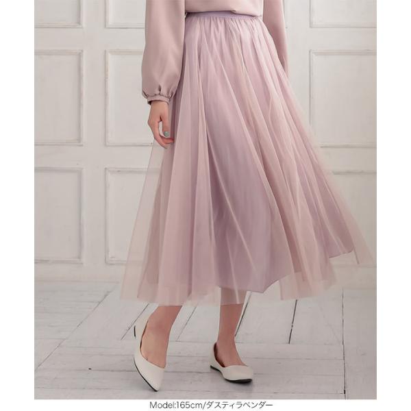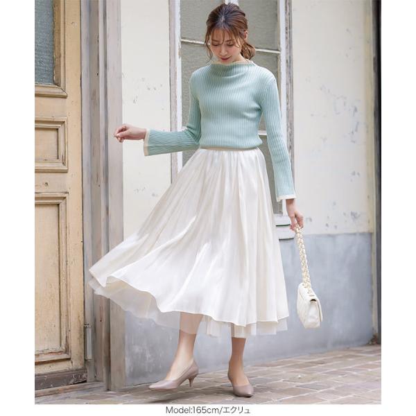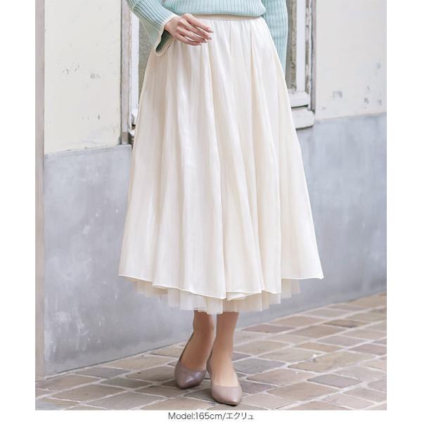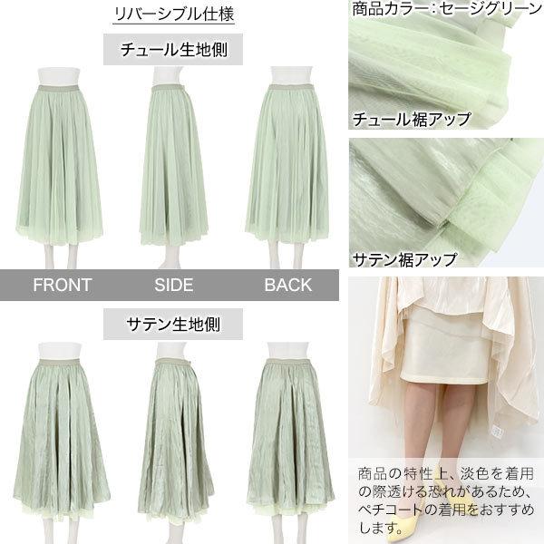 スカート チュールスカート ボトムス 春 ゆったり リバーシブル シャイニー サテン ロング ウエストゴム...