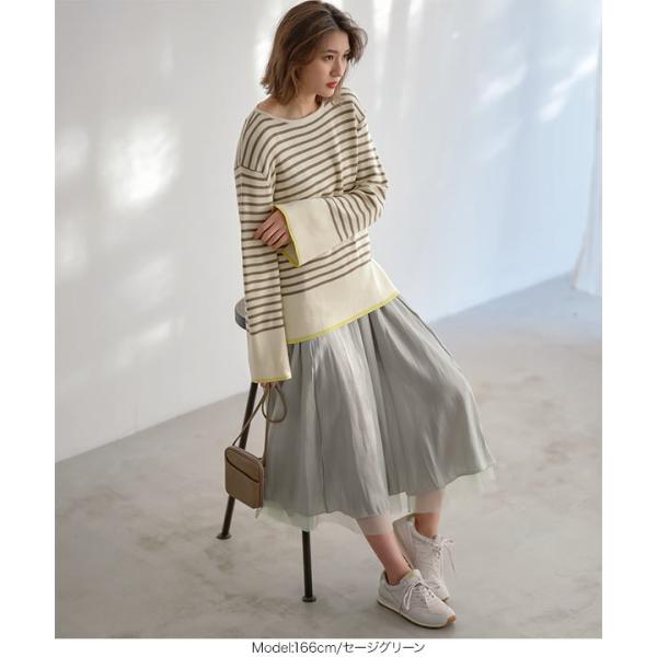 スカート チュールスカート ボトムス 春 ゆったり リバーシブル シャイニー サテン ロング ウエストゴム M3215
