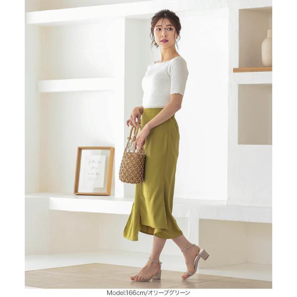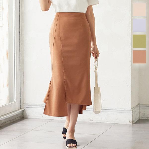 春夏 アシメスリットバックゴムサイドジップナロースカート レディース ボトムス 膝下 大人 きれいめ 上品 M3253