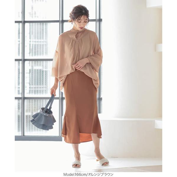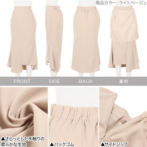 スカート レディース ボトムス 春夏 膝下 アシメ スリット バックゴム サイドジップ きれいめ M3253
