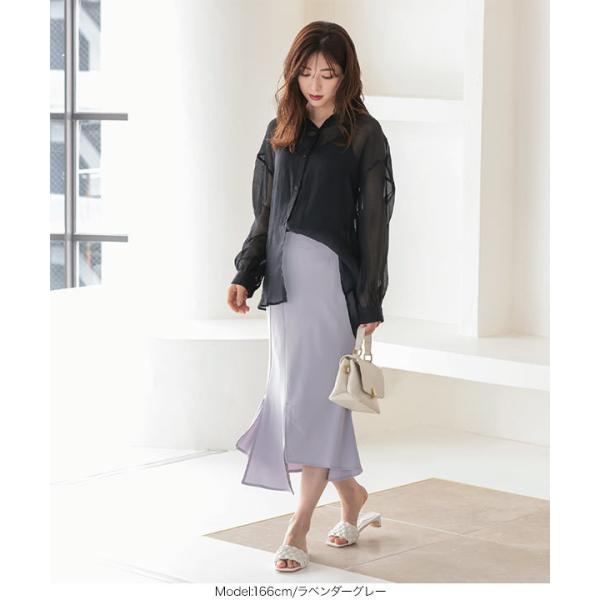 スカート レディース ボトムス 春夏 膝下 アシメ スリット