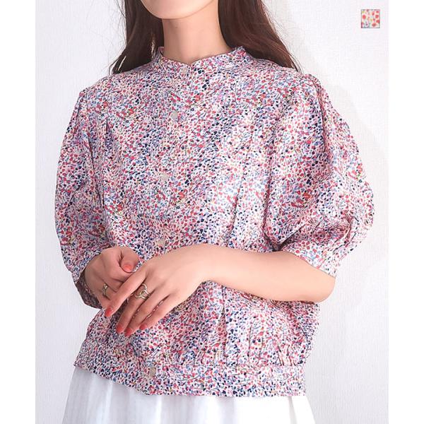 ボリュームスリーブ マルチ変形ドット柄ブラウス ブラウス ドット 変形ドット ポップ カラフル 肘丈 五分丈 C5345