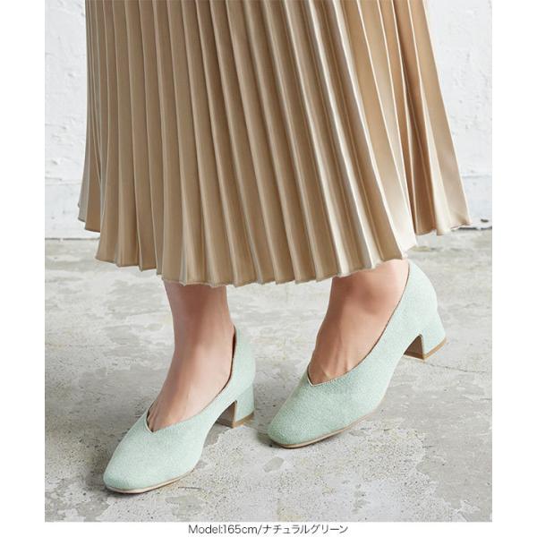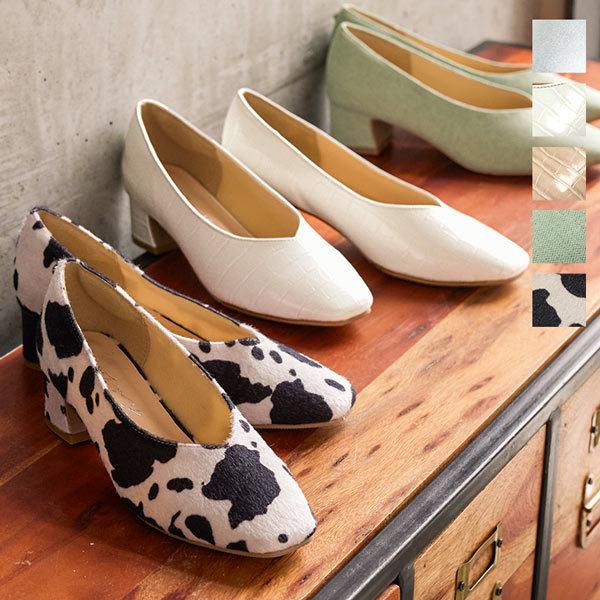 パンプス シューズ レディース 春 ローヒール 歩きやすい 走れる スクエアトゥ Vカット チャンキー I2254
