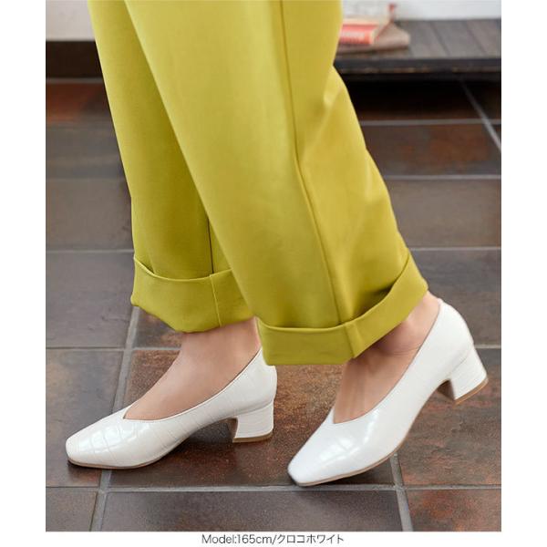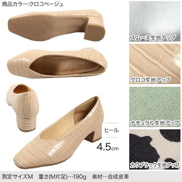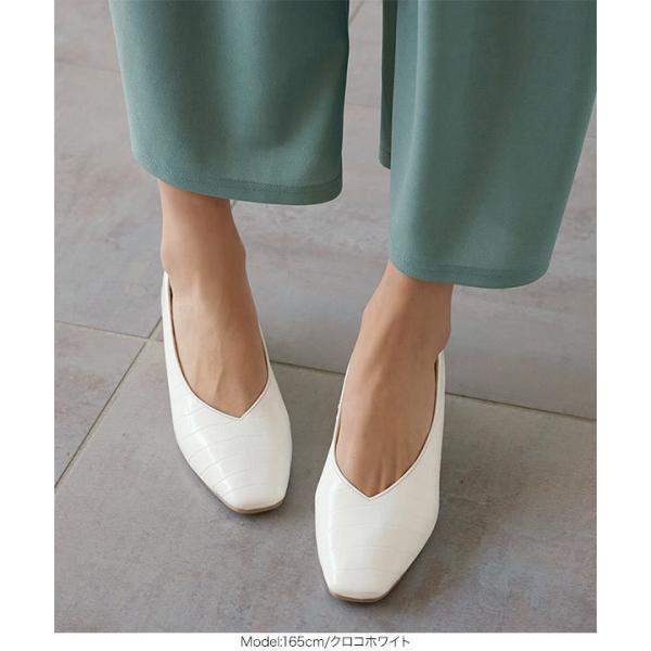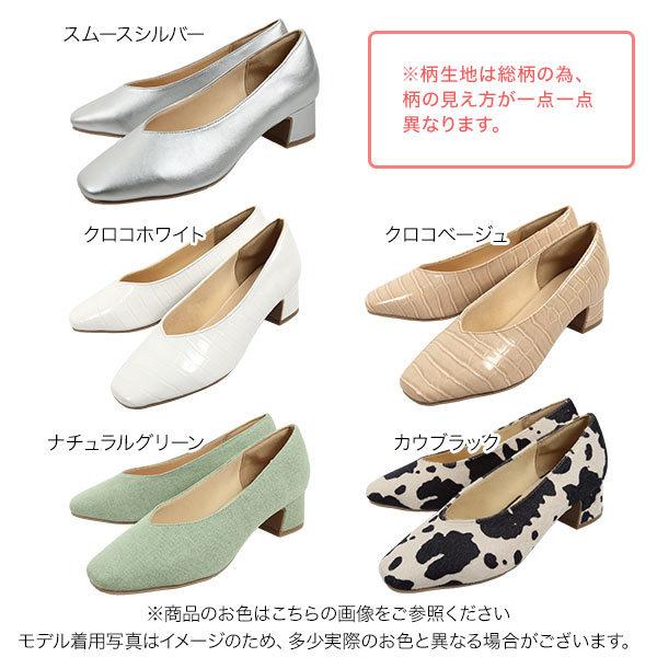 スクエアトゥVカットチャンキーローヒールパンプスシューズ