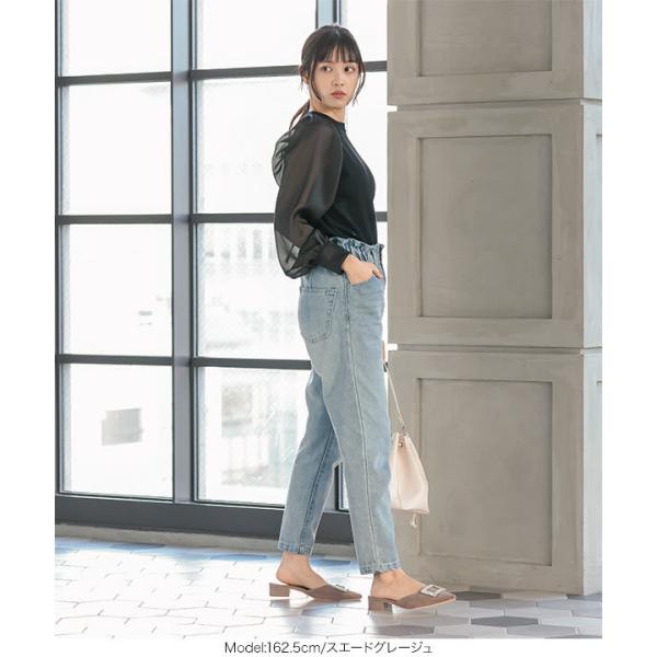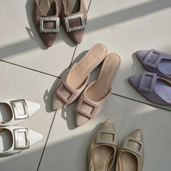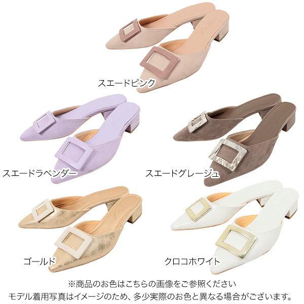 スクエアモチーフチャンキーヒールミュールサンダルシューズ