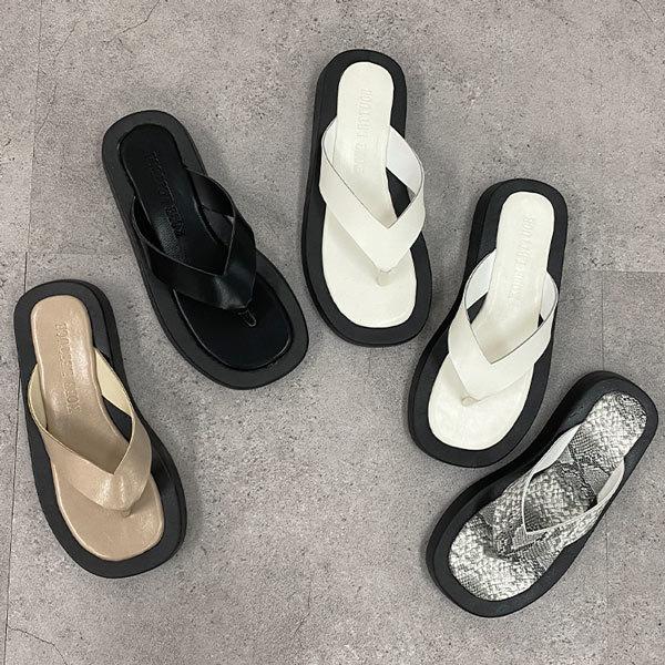 レザー調ベルトプラットフォームトングサンダル