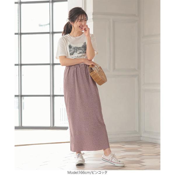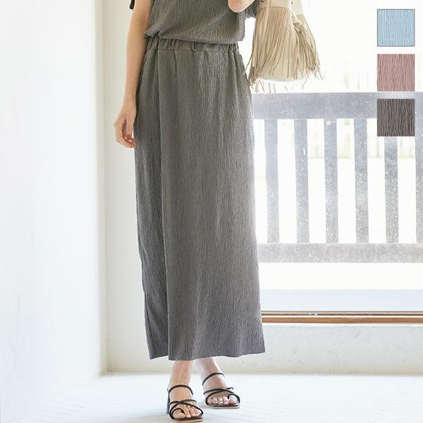 春夏 プリーツ加工切りっぱなしスカート レディース ボトムス ロング ウエストゴム 大人 上品 M3278