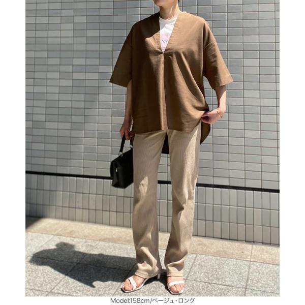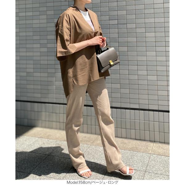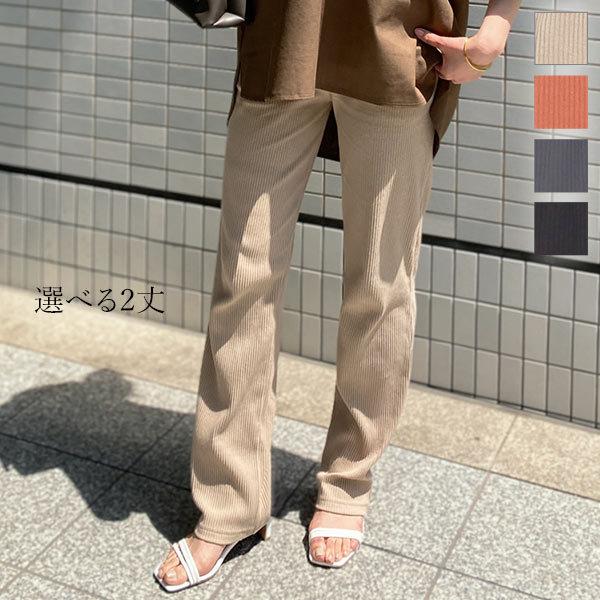 ストレートパンツ レディース ボトムス 春 夏 リブ スリム