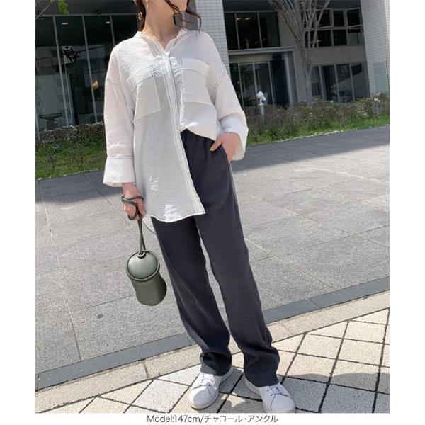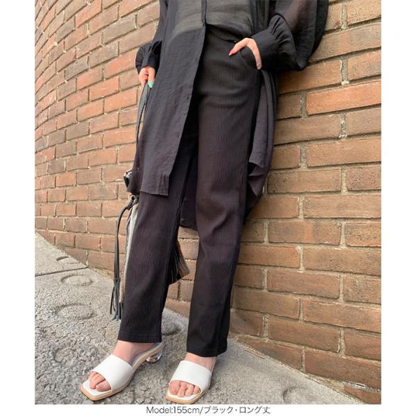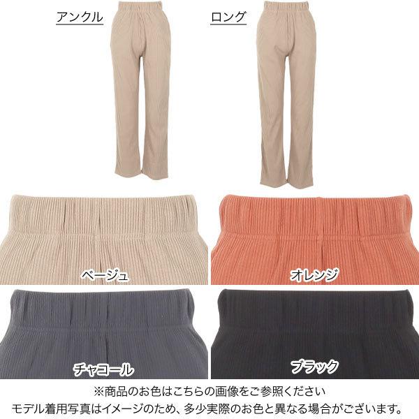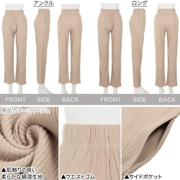 ストレートパンツ レディース ボトムス 春 夏 リブ スリム ロング アンクル ウエストゴム M3280