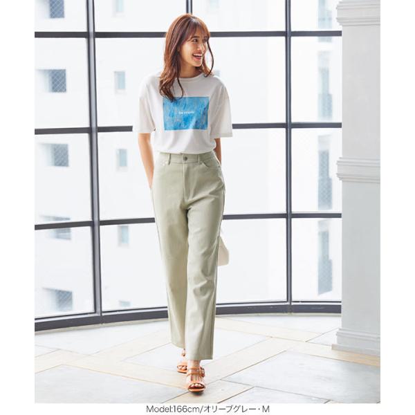 春夏 カラーツイルスリムワイドパンツ レディース ボトムス ロング 綿100 バックゴム 大人 ゆったり M3323