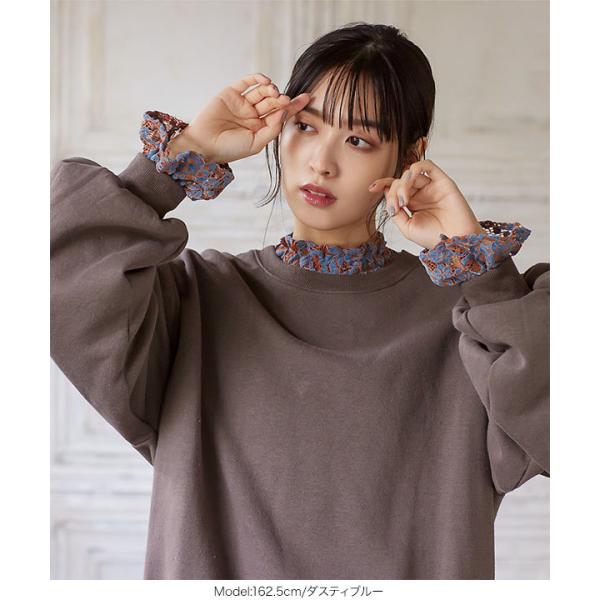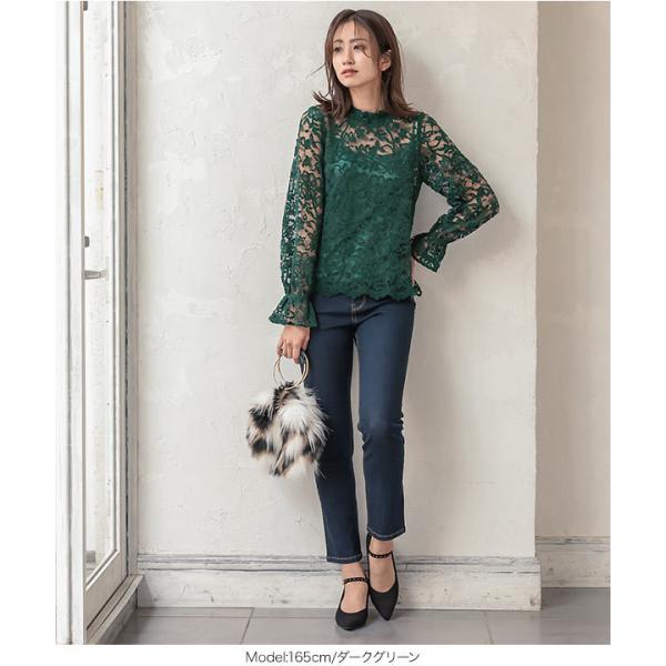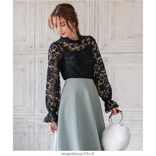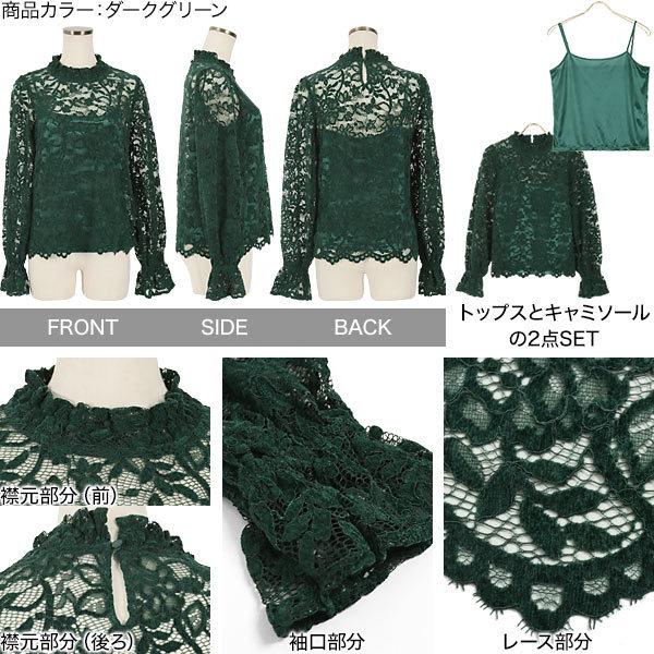 ブラウス レディース レース トップス キャミソール フラワー ベロア レース セット 長袖 レイヤード C5147